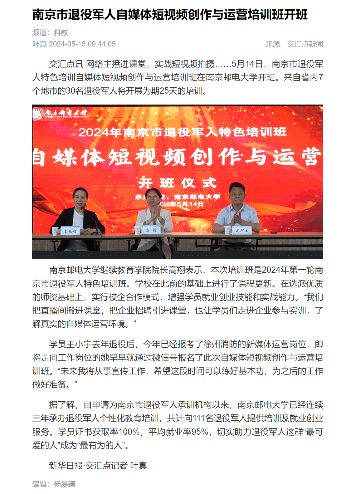 【新華日報客戶端】南京市退役軍人自媒體短視頻創(chuàng)作與運營培訓班開班