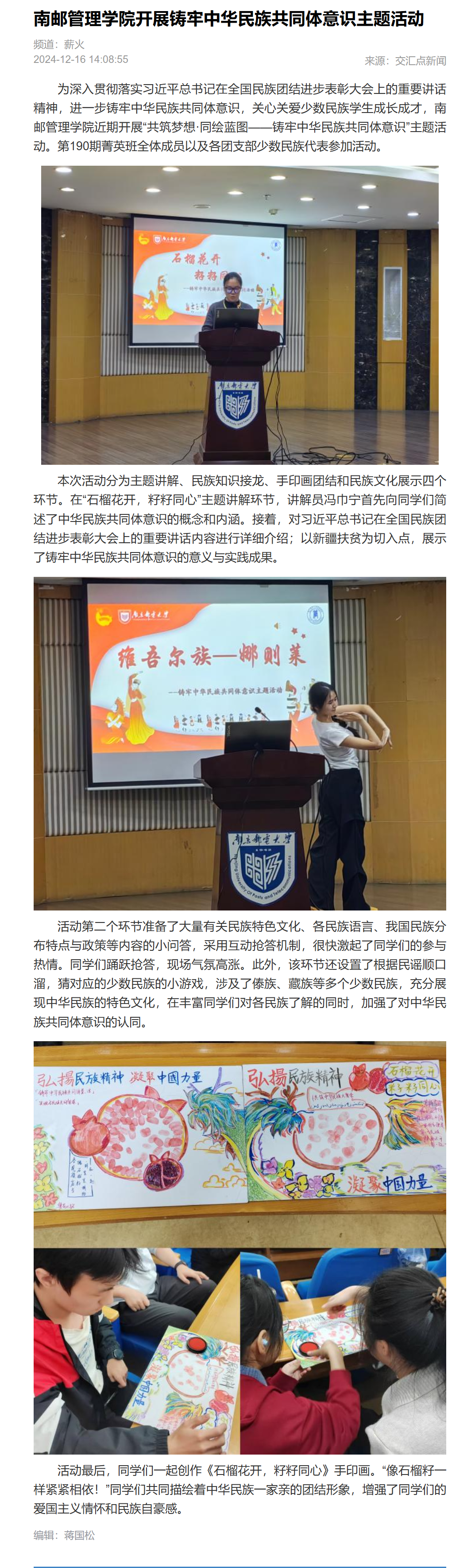 【新華日報客戶端】南郵管理學院開展鑄牢中華民族共同體意識主題活動