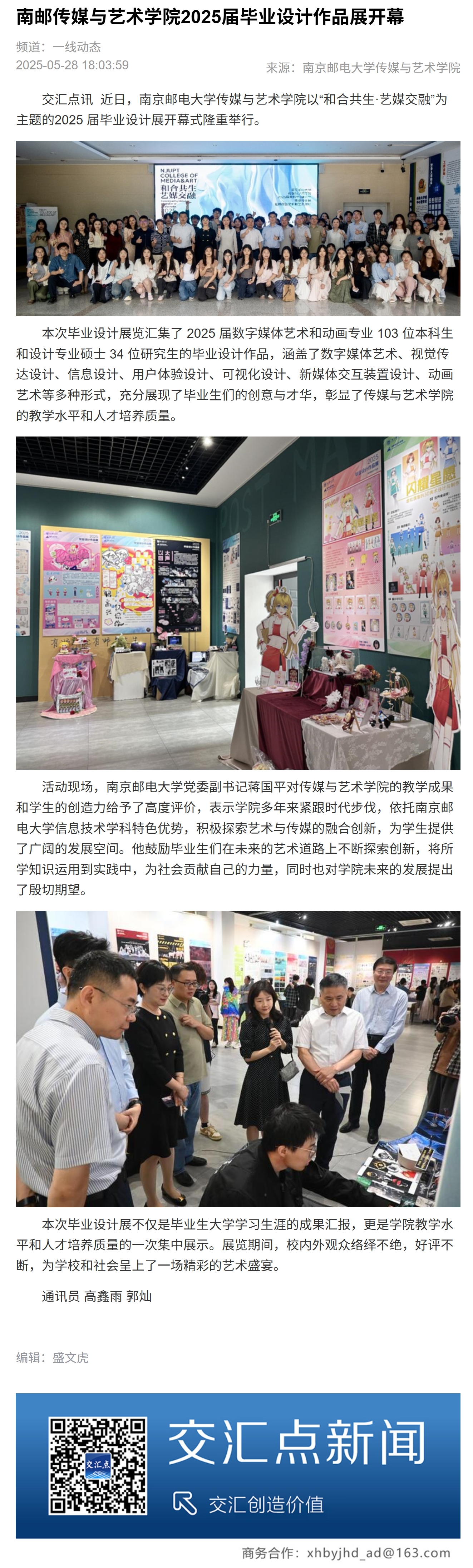 【新華日報客戶端】南郵傳媒與藝術學院2025屆畢業(yè)設計作品展開幕