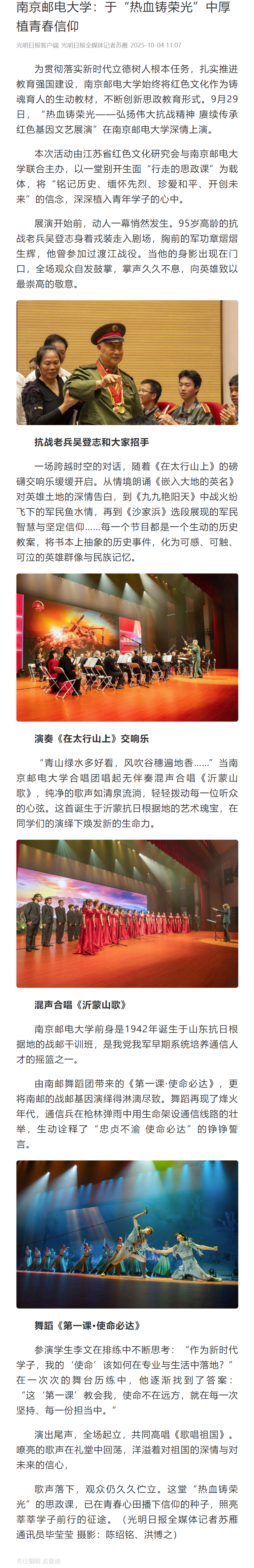 【光明日?qǐng)?bào)客戶端】南京郵電大學(xué):于“熱血鑄榮光”中厚植青春信仰