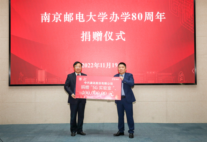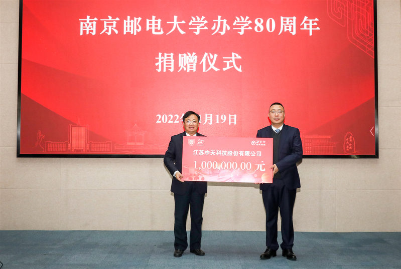 時值學(xué)校辦學(xué)80周年華誕,廣大通信行業(yè)企業(yè)和校友企業(yè)以不同形式表達(dá)對母校的深情厚誼。捐贈儀式上,蔡建楠副總裁代表中興通訊捐資建設(shè)“5G實驗室”、冠名中興報告廳,薛馳總裁代表中天科技捐資冠名中天科技報告廳,李六兵董事長代表中貝通信捐資冠名校慶健身跑活動,宗琰董事長代表嘉環(huán)科技捐資建設(shè)桃李園,孫緒芹董事長代表南京茶肆茶業(yè)有限公司實物捐贈校慶活動。