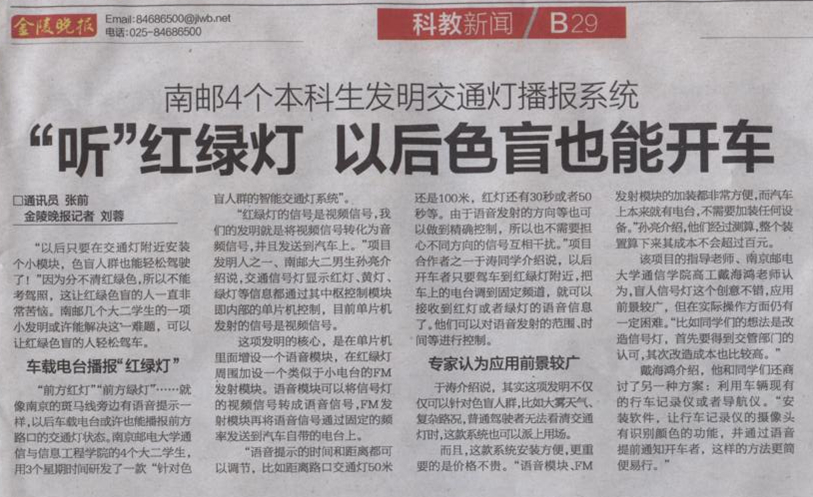 【金陵晚報】“聽”紅綠燈 以后色盲也能開車