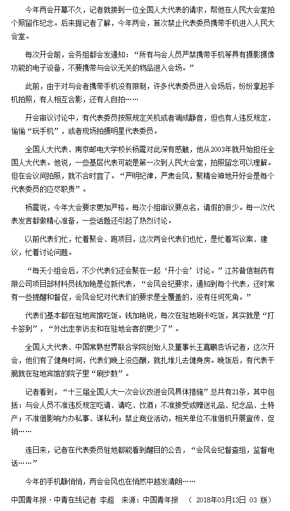 【中國青年報】今年兩會,代表給手機“放假”