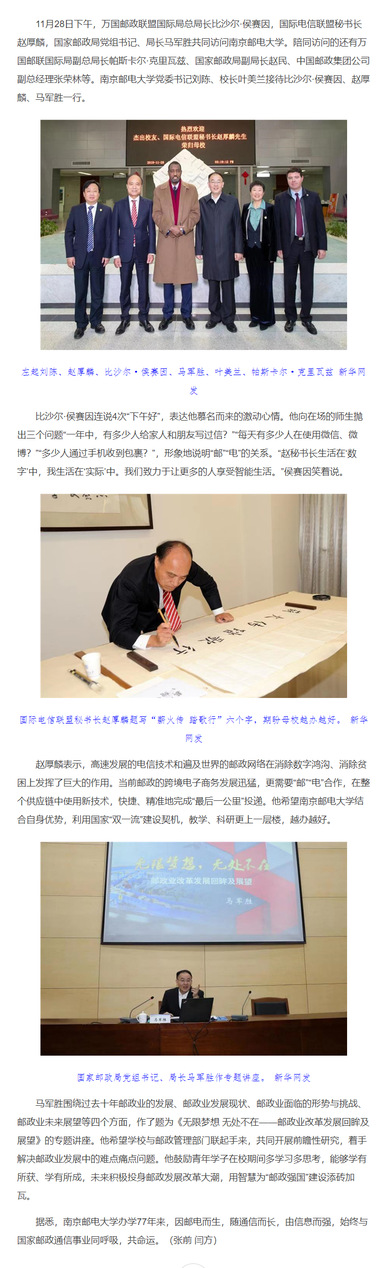 | 【新華網】萬國郵聯、國際電聯、國家郵政局領導訪問南郵 |
