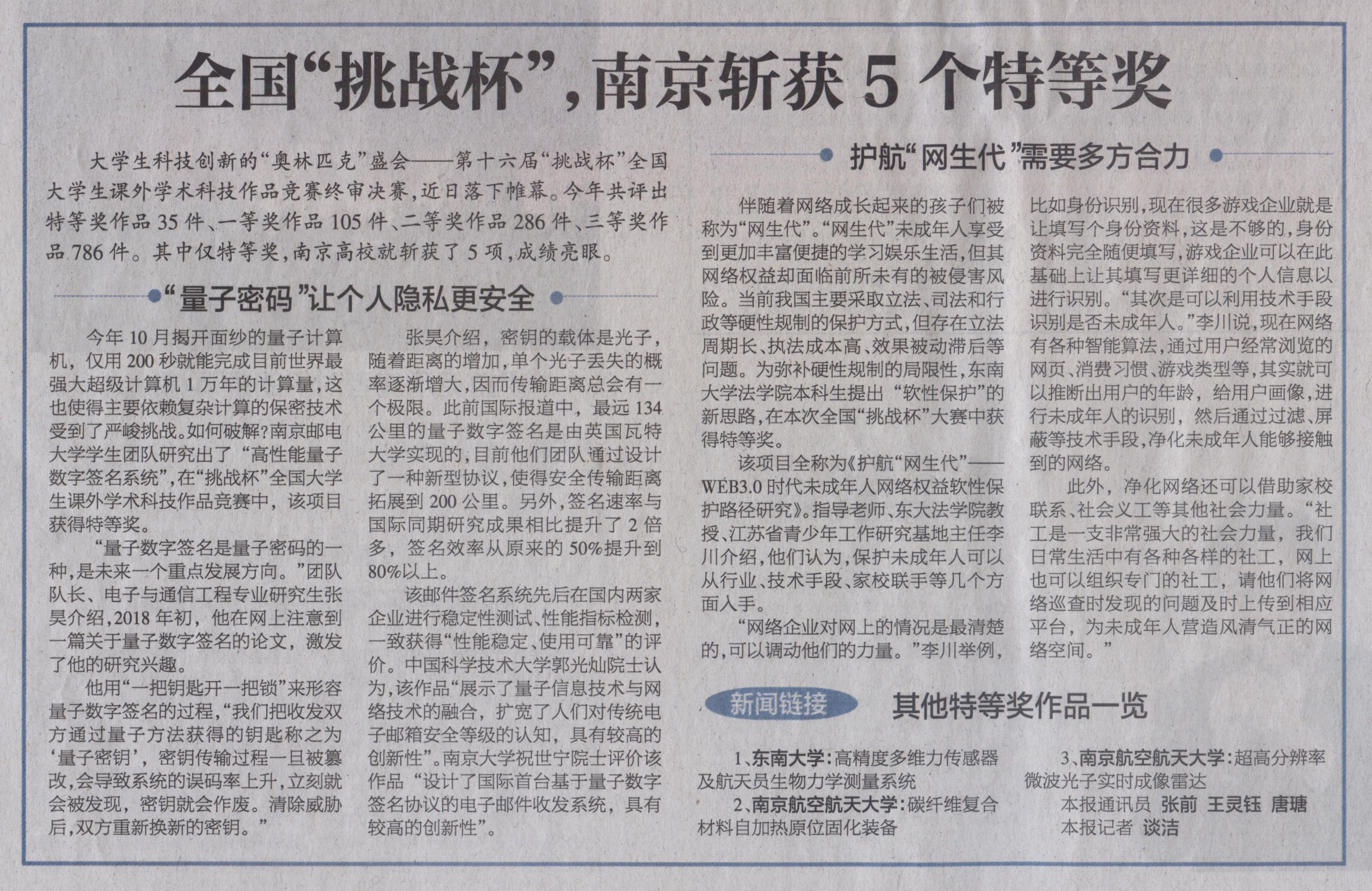 【南京日報】全國“挑戰杯”,南京斬獲5個特等獎