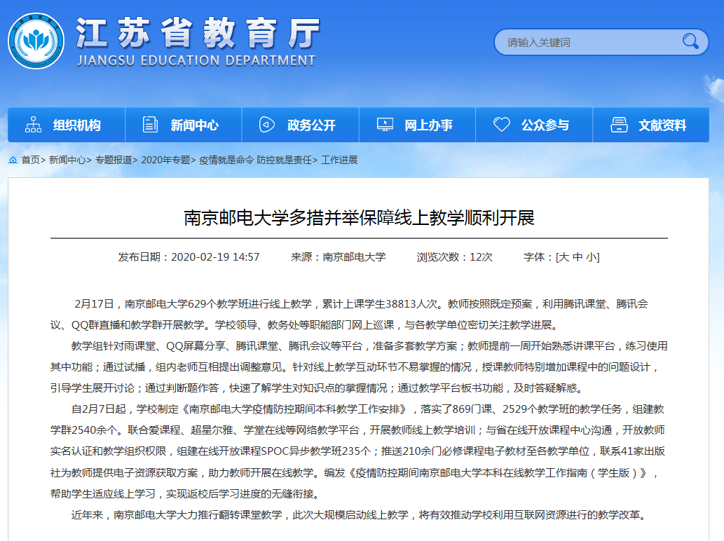 | 【江蘇教育】 南京郵電大學多措并舉保障線上教學順利開展 |