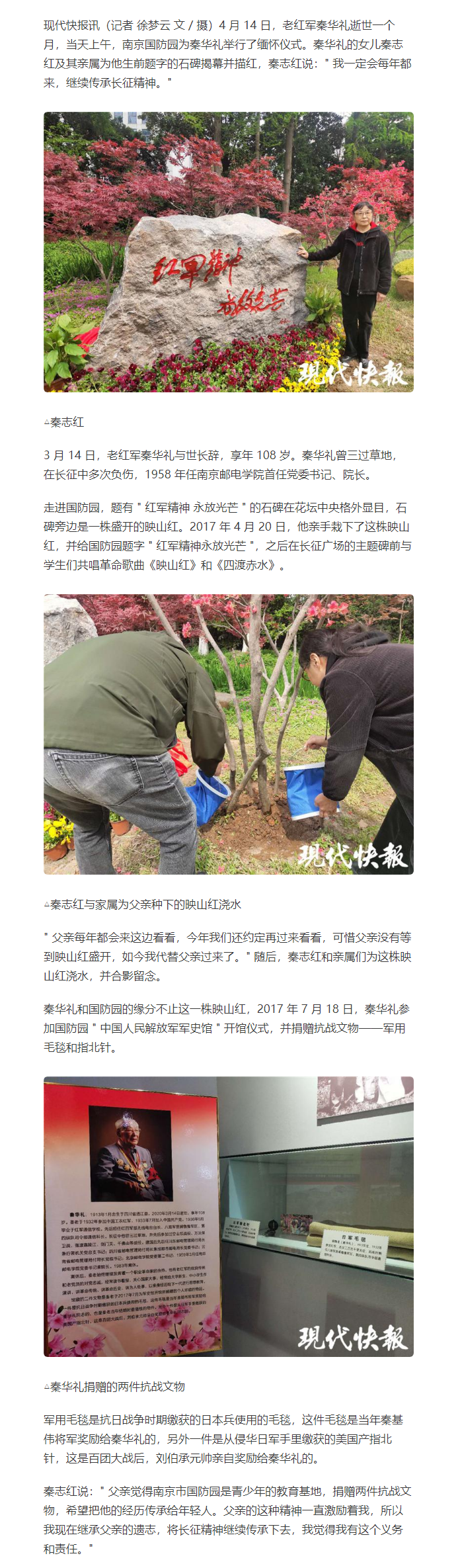 | 【現(xiàn)代快報(bào)全媒體】老紅軍秦華禮緬懷儀式在南京國(guó)防園舉行,女兒:我會(huì)繼續(xù)傳承父親的長(zhǎng)征精神 |