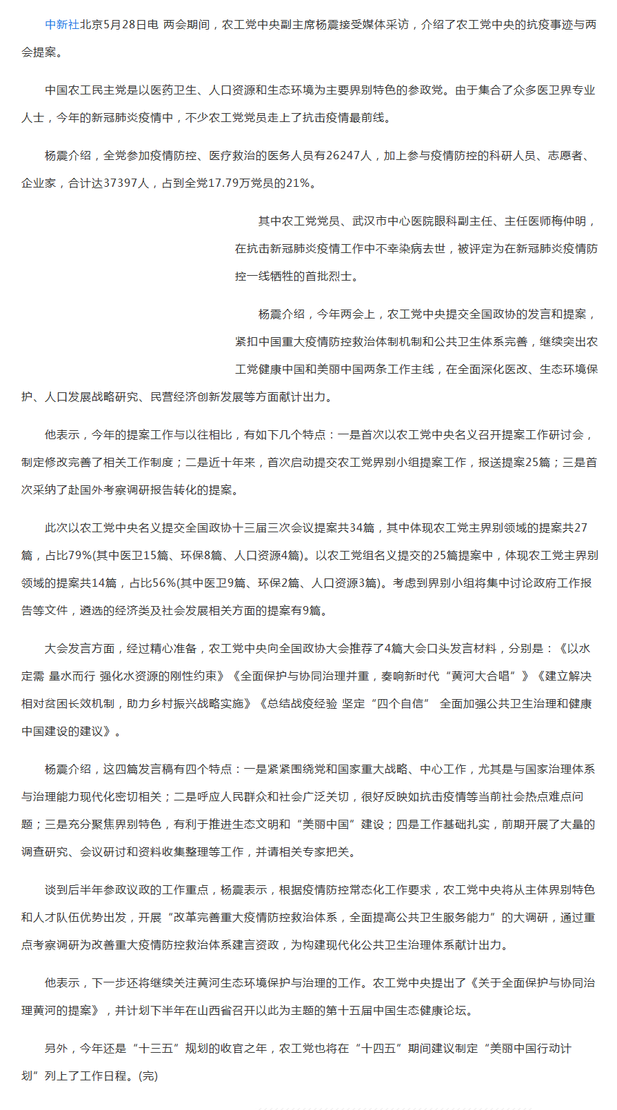 | 【中國新聞網(wǎng)】農工黨中央副主席楊震:繼續(xù)突出農工黨“健康中國”“美麗中國”工作主線 |