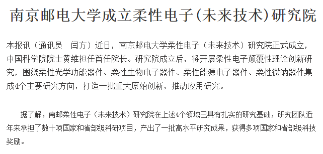 | 【江蘇教育報】南京郵電大學成立柔性電子(未來技術)研究院 |