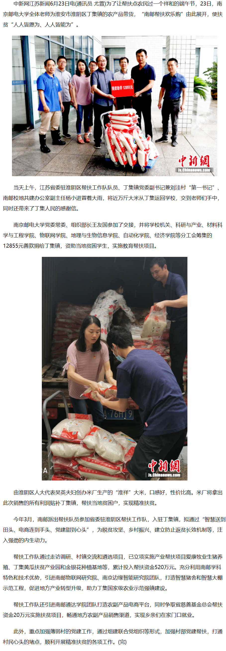 | 【中國新聞網】南郵開展幫扶歡樂購 全體老師為蘇北農產品帶貨 |