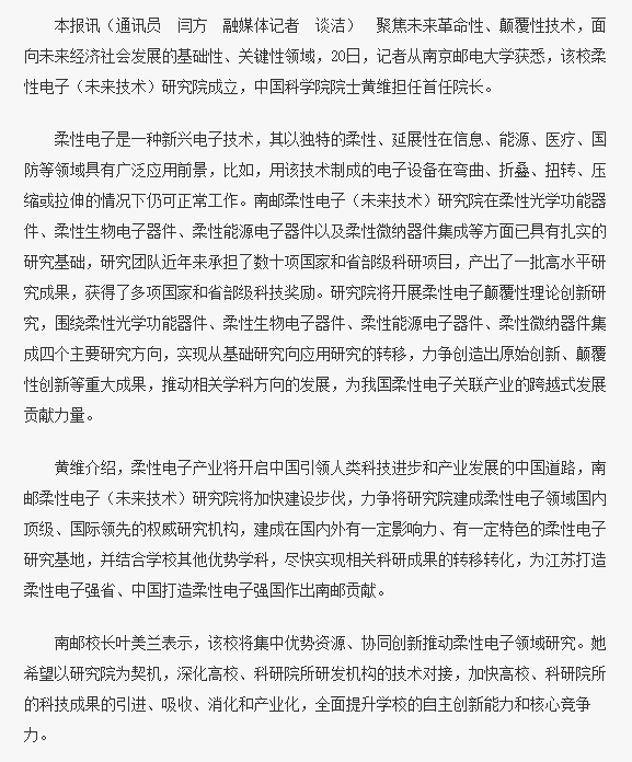 | 【南京日報】彎曲折疊全不怕 扭轉拉伸剛亦柔 |