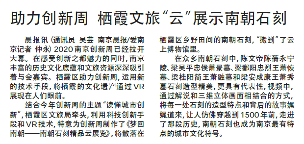 | 【南京晨報】助力創新周棲霞文旅“云”展示南朝石刻 |