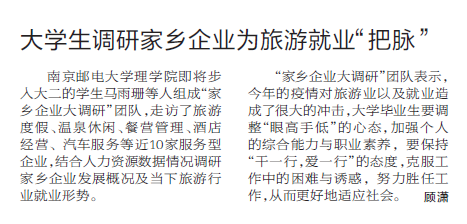 | 【現代快報】大學生調研家鄉企業為旅游就業“把脈” |