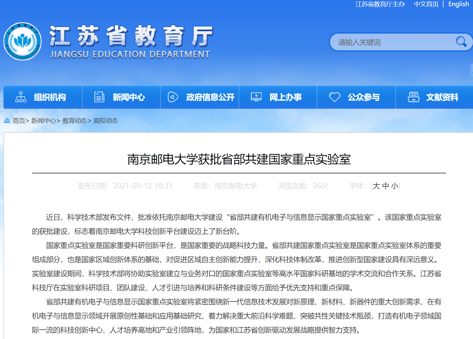 | 【省教育廳官網】南京郵電大學獲批省部共建國家重點實驗室 |