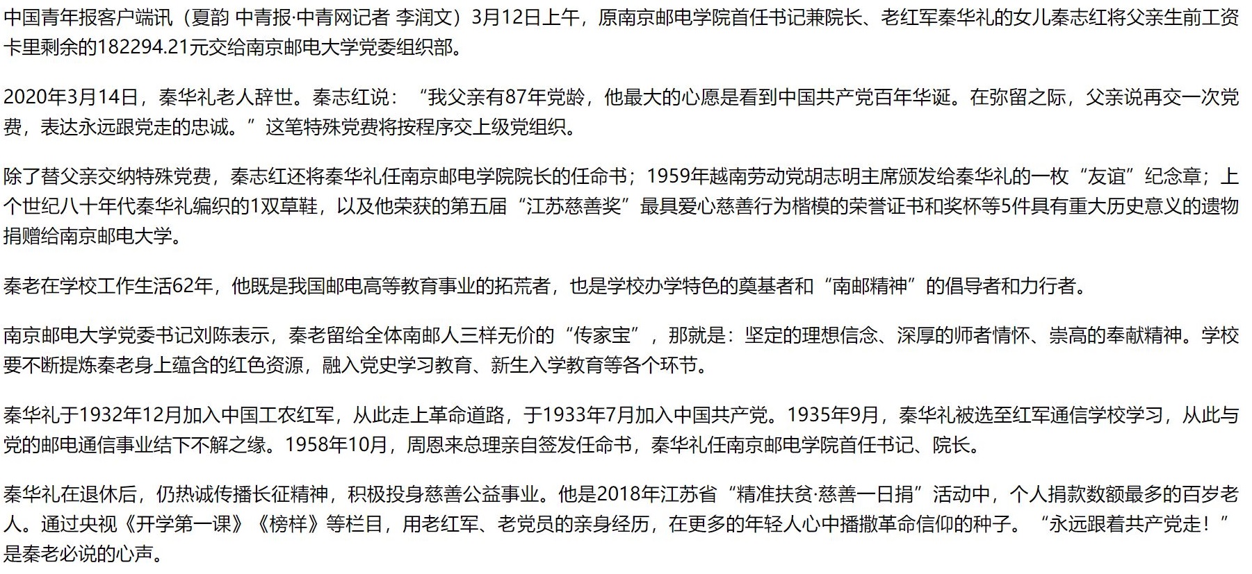 | 【中國青年報客戶端】老紅軍交納十八萬元黨費 |