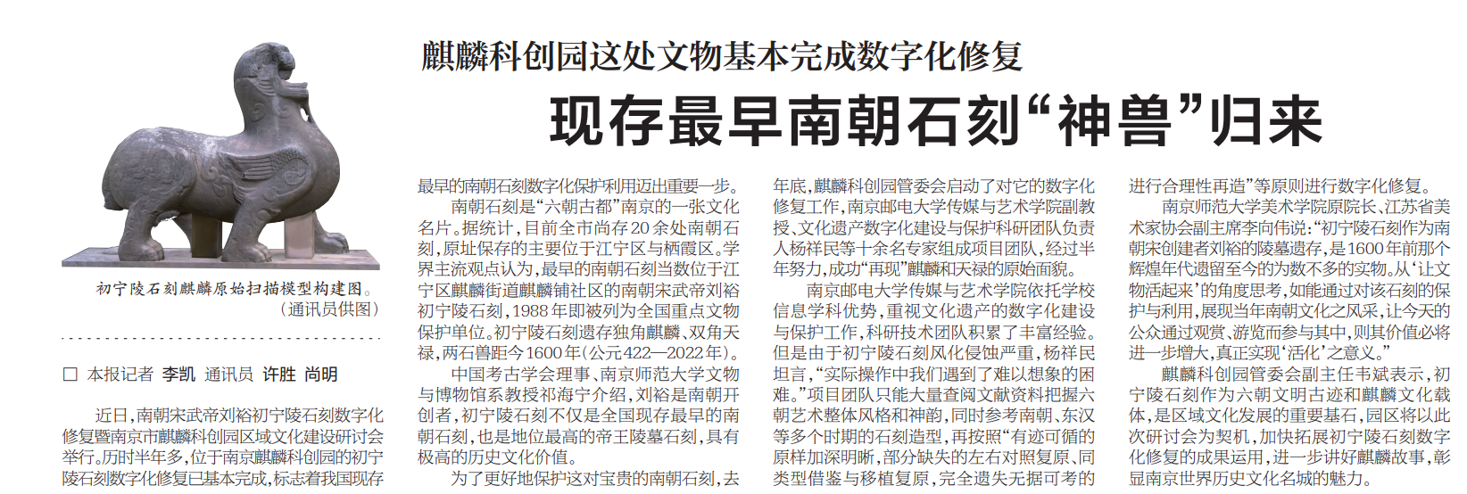 | 【新華日?qǐng)?bào)】現(xiàn)存最早南朝石刻“神獸”歸來(lái) |