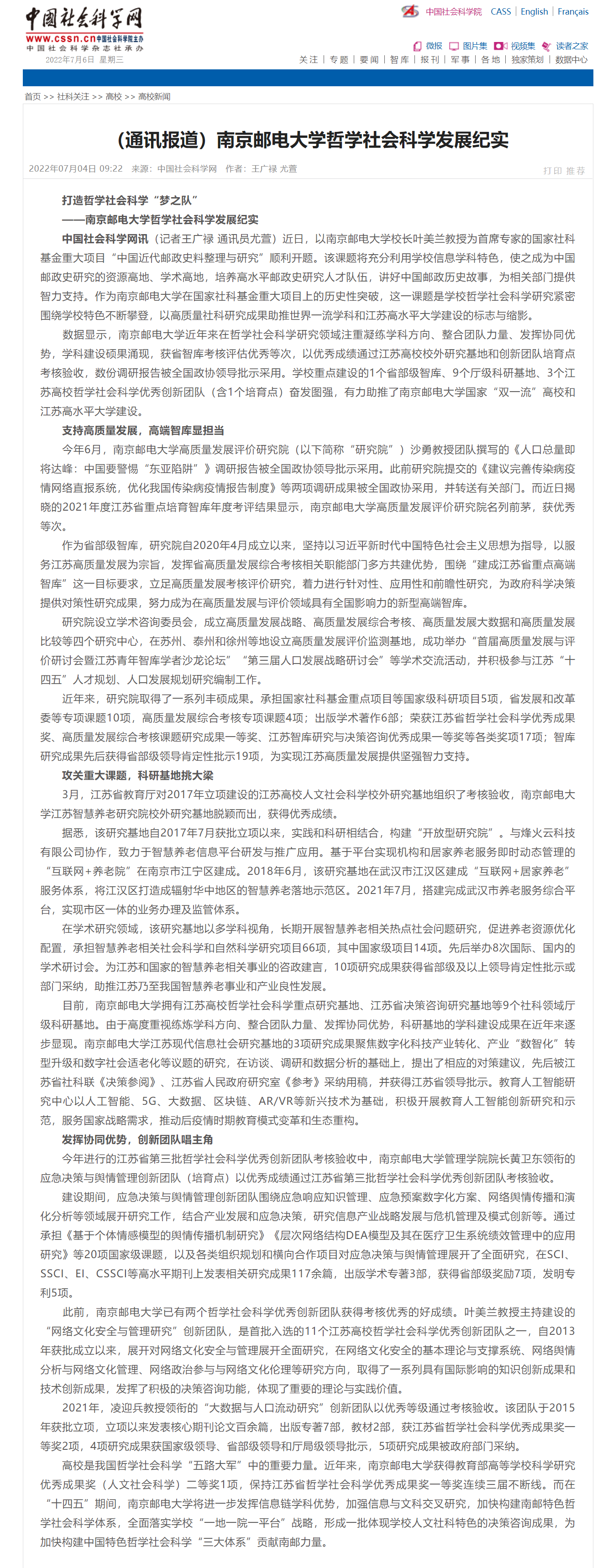 | 【中國社會科學網】南京郵電大學哲學社會科學發展紀實 |