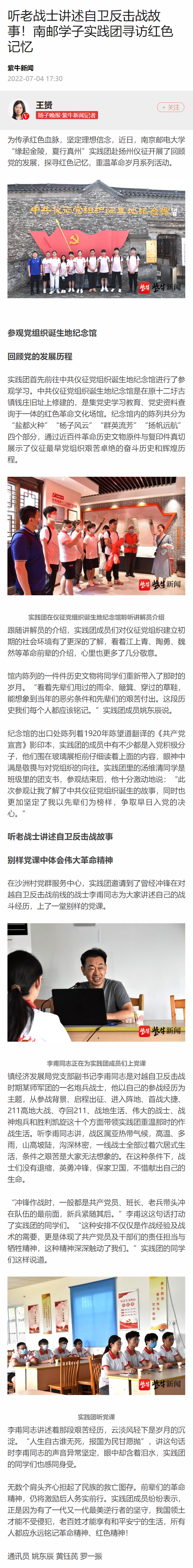 | 【揚子晚報客戶端】聽老戰士講述自衛反擊戰故事!南郵學子實踐團尋訪紅色記憶 |