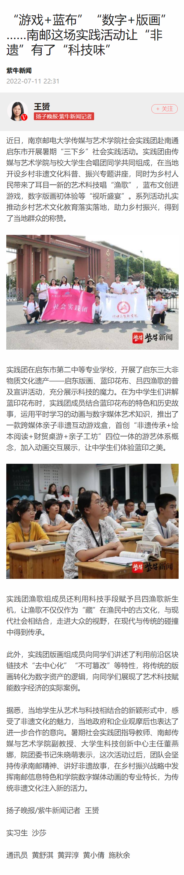 | 【揚子晚報客戶端】“游戲+藍布”“數字+版畫”……南郵這場實踐活動讓“非遺”有了“科技味 |