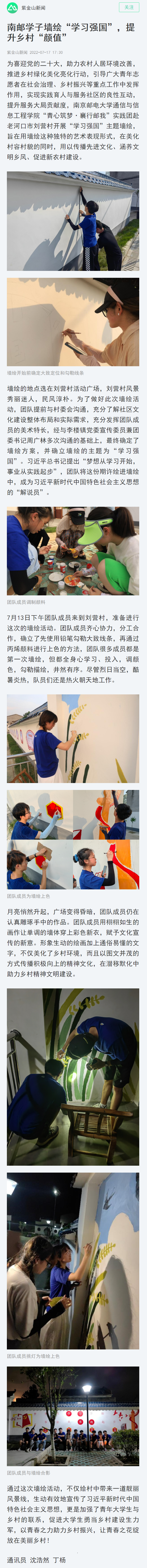| 【南京日報客戶端】南郵學(xué)子墻繪“學(xué)習(xí)強(qiáng)國”,提升鄉(xiāng)村“顏值” |