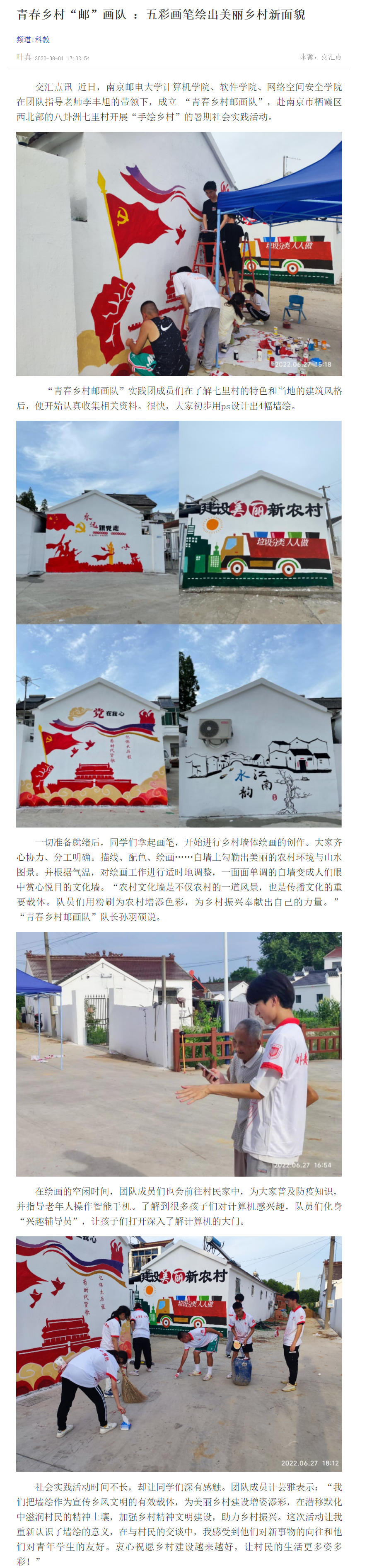 | 【新華日報客戶端】青春鄉村“郵”畫隊 :五彩畫筆繪出美麗鄉村新面貌 |