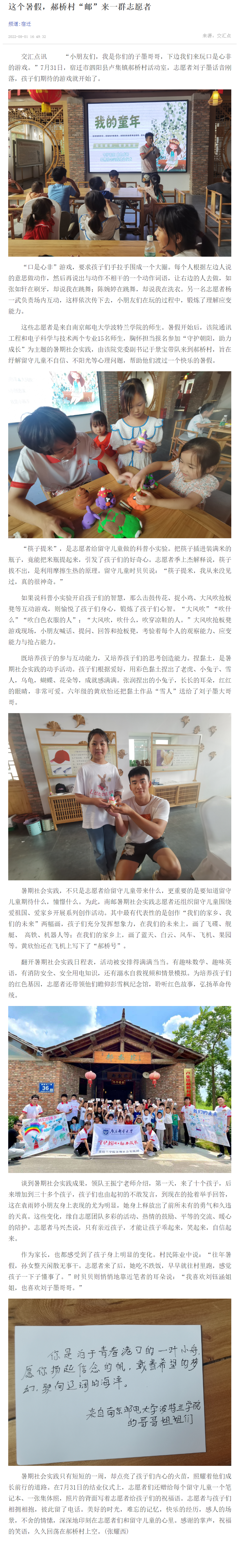 | 【新華日報客戶端】這個暑假,郝橋村“郵”來一群志愿者 |