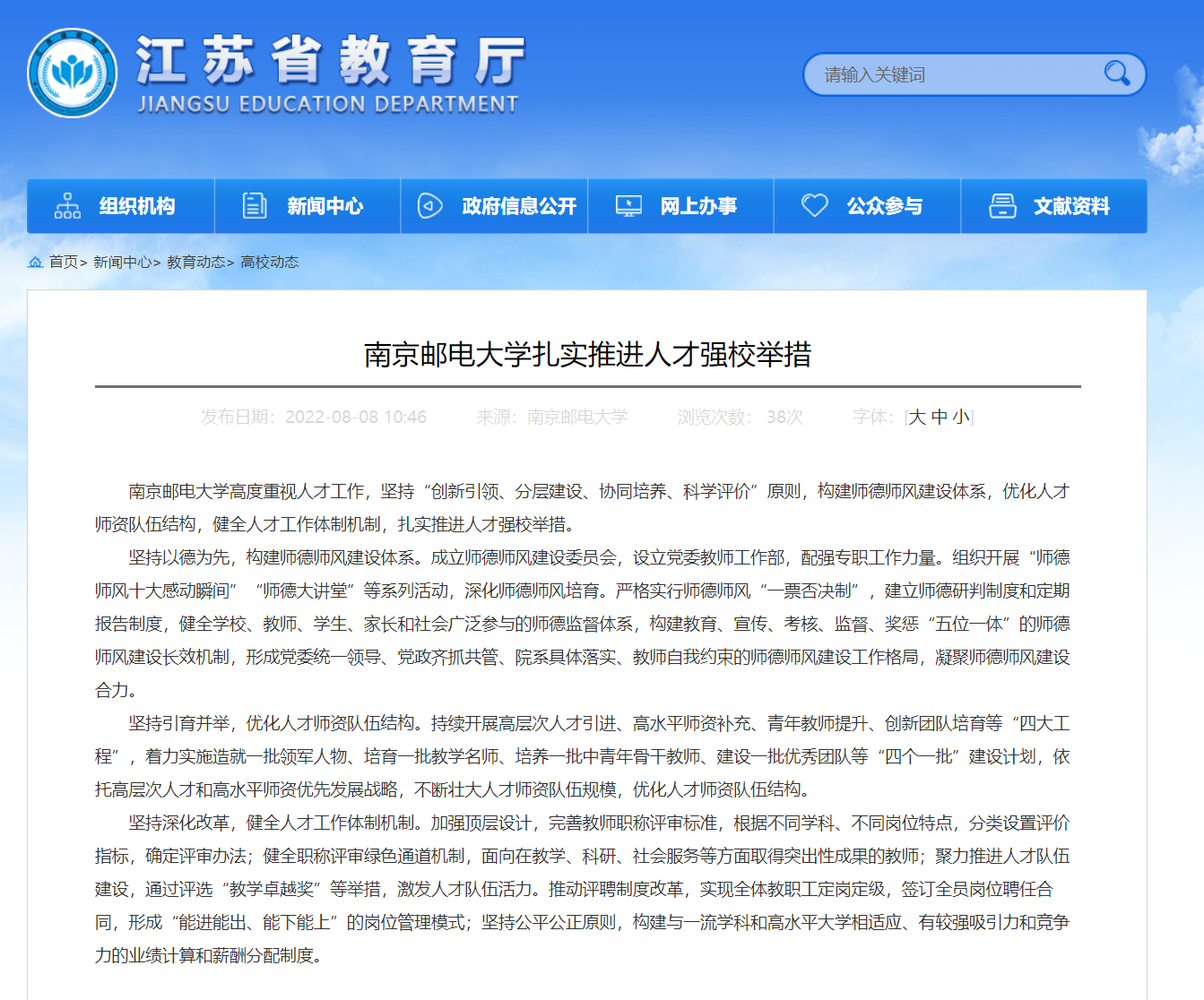 | 【省教育廳官網(wǎng)】南京郵電大學(xué)扎實(shí)推進(jìn)人才強(qiáng)校舉措 |