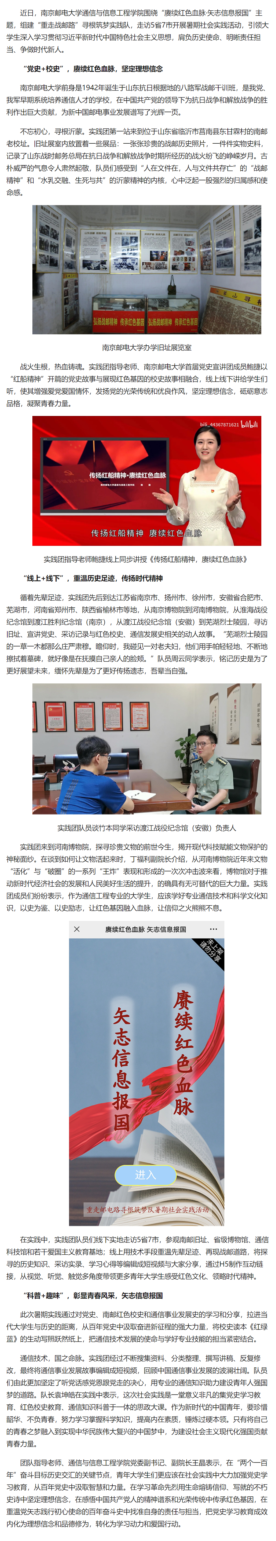 | 【中國江蘇網】南郵學子賡續紅色血脈 走訪5省7市尋根筑夢 |