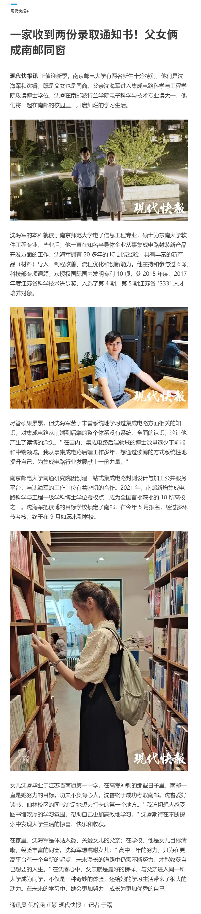 | 【現代快報全媒體】一家收到兩份錄取通知書!父女倆成南郵同窗 |