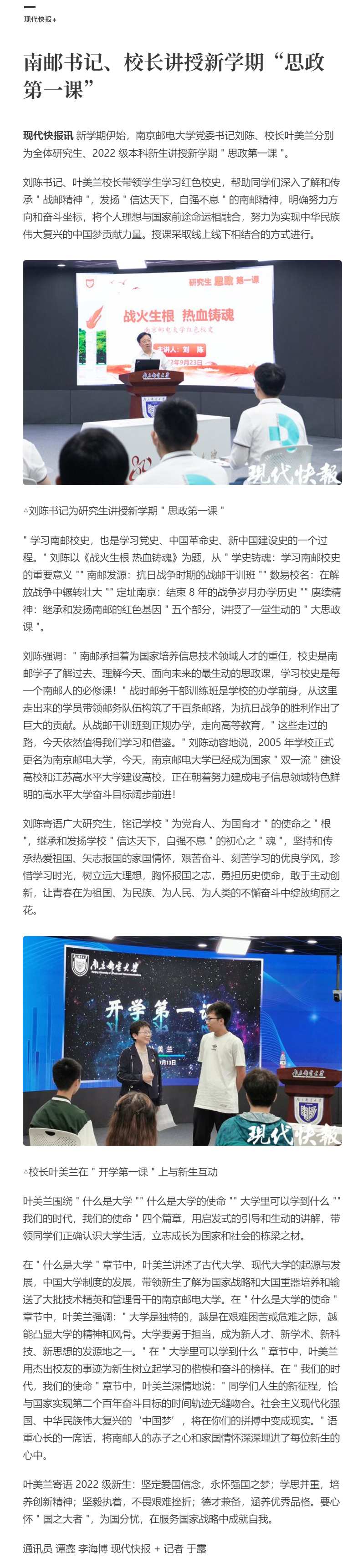 | 【現(xiàn)代快報(bào)全媒體】南郵書記、校長(zhǎng)講授新學(xué)期“思政第一課” |