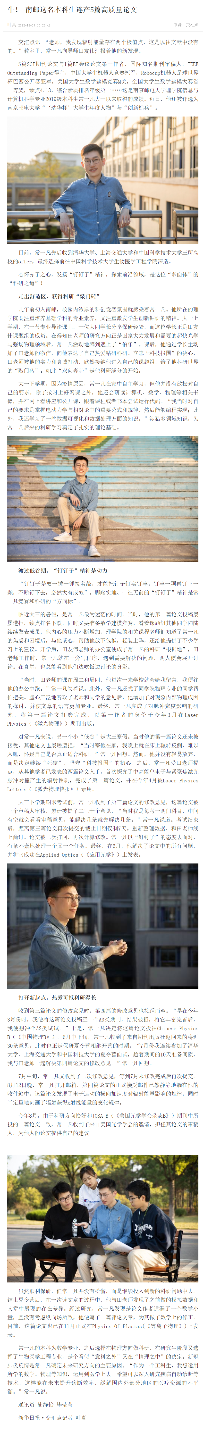 | 【新華日報客戶端】牛! 南郵這名本科生連產(chǎn)5篇高質(zhì)量論文 |