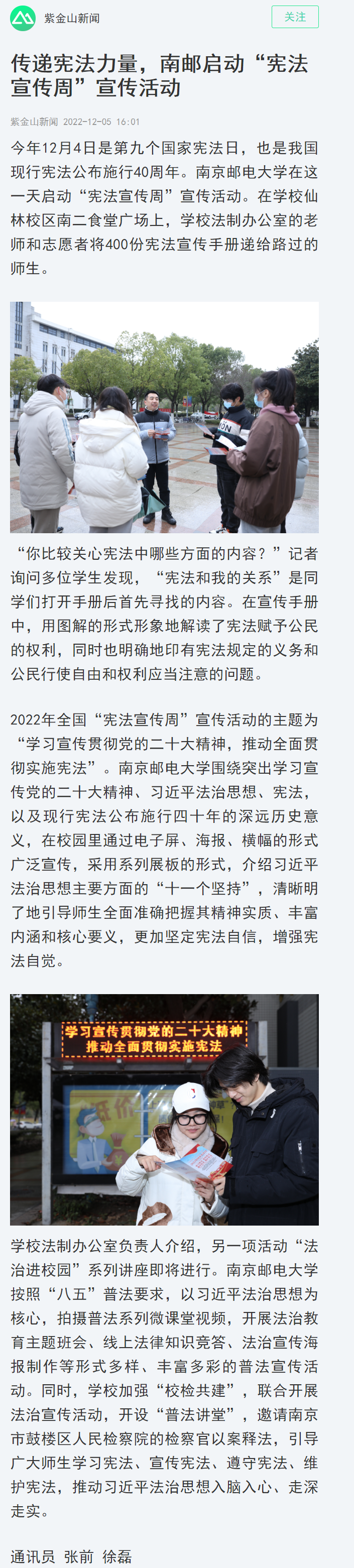 | 【南京日報客戶端】傳遞憲法力量,南郵啟動“憲法宣傳周”宣傳活動 |