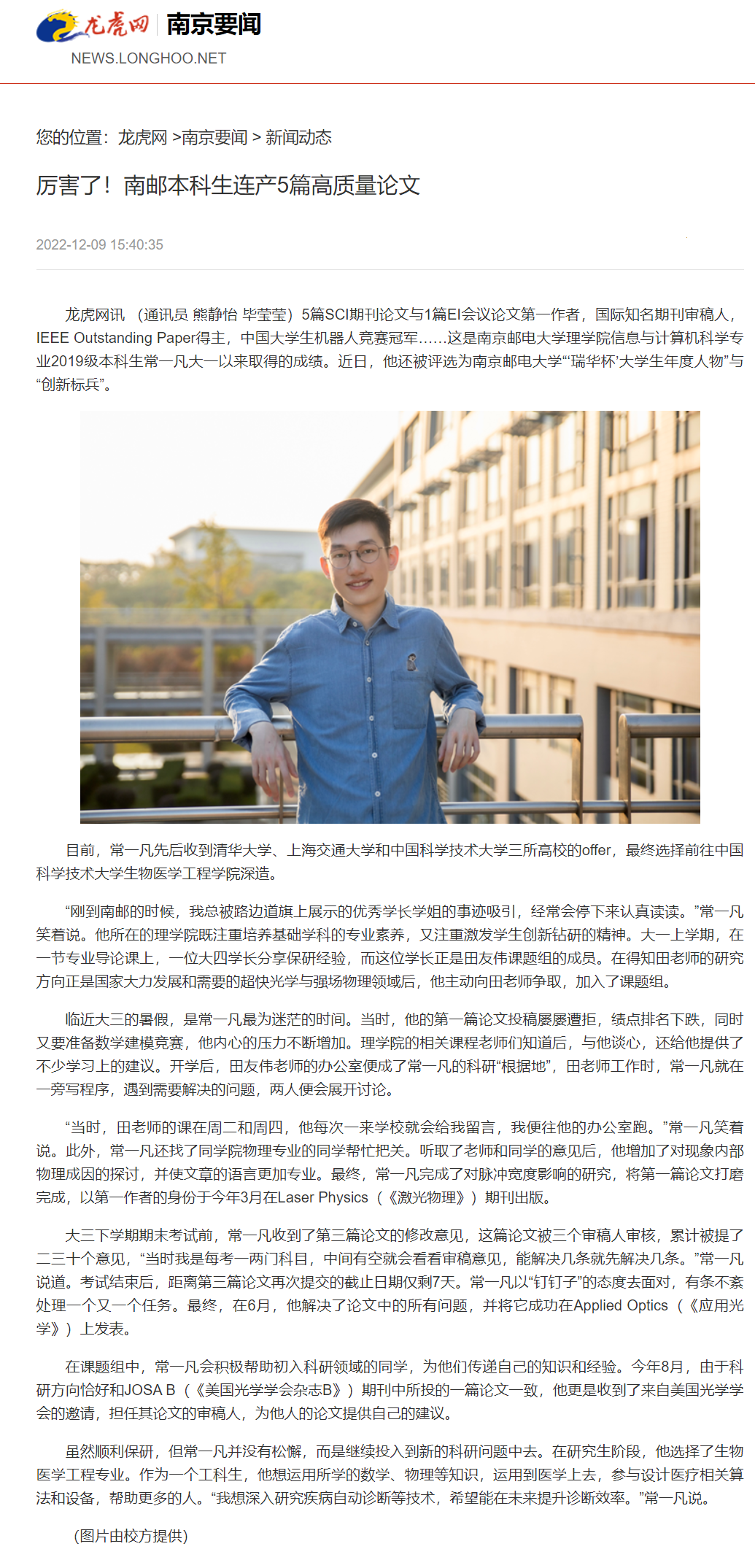 | 【龍虎網】厲害了!南郵本科生連產5篇高質量論文 |