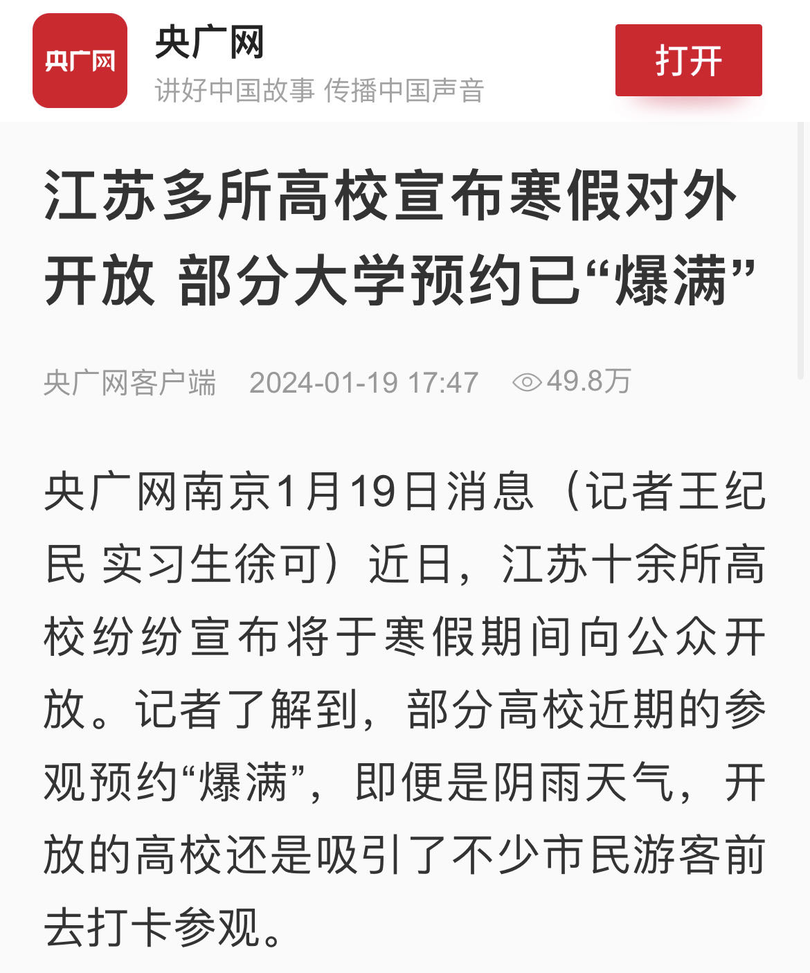 | 【央廣網(wǎng)】江蘇多所高校宣布寒假對外開放 |