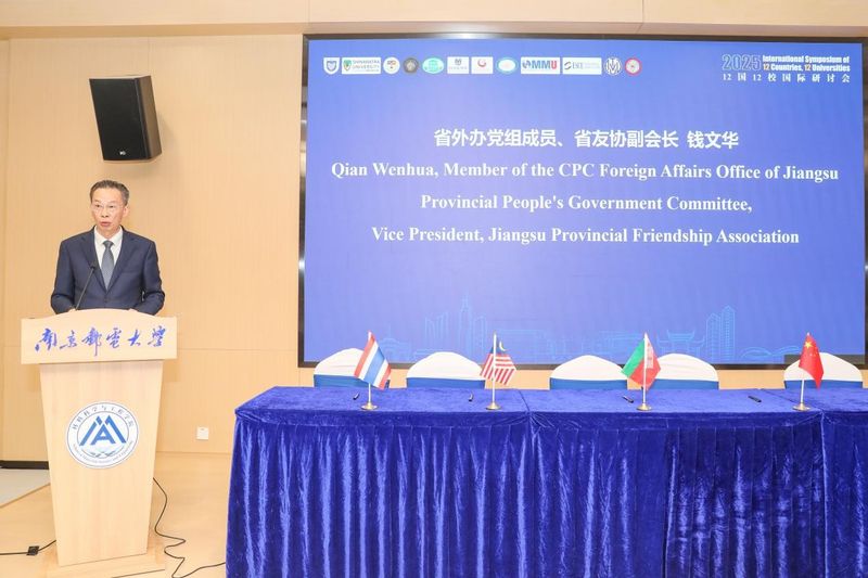 省對(duì)外友好協(xié)會(huì)錢文華副會(huì)長在致辭中指出,江蘇與多個(gè)國家和地區(qū)在教育領(lǐng)域的深度合作,提升了江蘇高等教育的國際化水平和國際影響力。12個(gè)國家的12所高校帶著各自獨(dú)特的文化底蘊(yùn)、學(xué)術(shù)傳統(tǒng)在南郵匯聚,相互交流、相互學(xué)習(xí),將進(jìn)一步推動(dòng)多元文化的碰撞與融合。他提出,希望聯(lián)盟成為知識(shí)創(chuàng)新的匯聚地,整合各方學(xué)術(shù)資源,開展聯(lián)合科研項(xiàng)目,攻克全球性科研難題,為人類社會(huì)進(jìn)步提供更多智力支持;希望聯(lián)盟成為人才培養(yǎng)的新高地,開展師生交換、聯(lián)合培養(yǎng)、學(xué)術(shù)競賽等多種形式的交流活動(dòng),提升跨文化交流能力和團(tuán)隊(duì)協(xié)作能力;希望聯(lián)盟成為文化交流的重要紐帶,各國師生深入了解彼此文化傳統(tǒng)、風(fēng)俗習(xí)慣和價(jià)值觀念,增進(jìn)相互之間的理解與信任,為國際友好合作營造良好氛圍。
