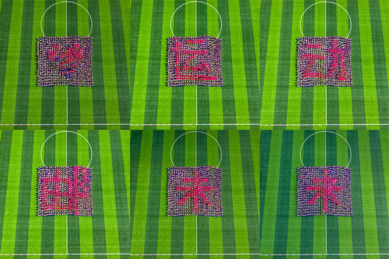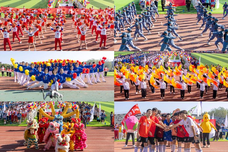 大型團(tuán)體操《解碼青春》 運(yùn)動(dòng)會(huì)期間,運(yùn)動(dòng)員們?cè)谫悎?chǎng)上奮勇拼搏,志愿者們穿梭服務(wù),觀眾熱情助威,共同繪就了一幅生動(dòng)熱烈的體育畫(huà)卷。