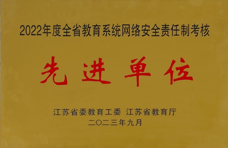 Our school was awarded the “2022 Advanced Unit for the Cyber Security Responsibility Assessment of Jiangsu Education System”